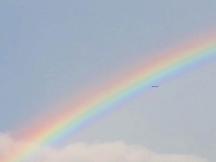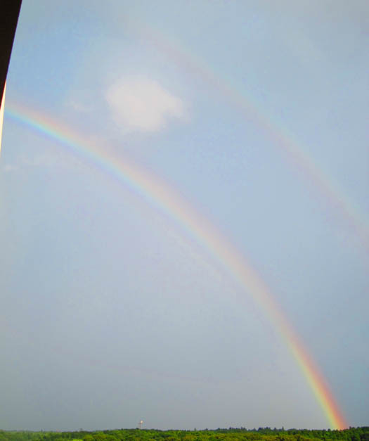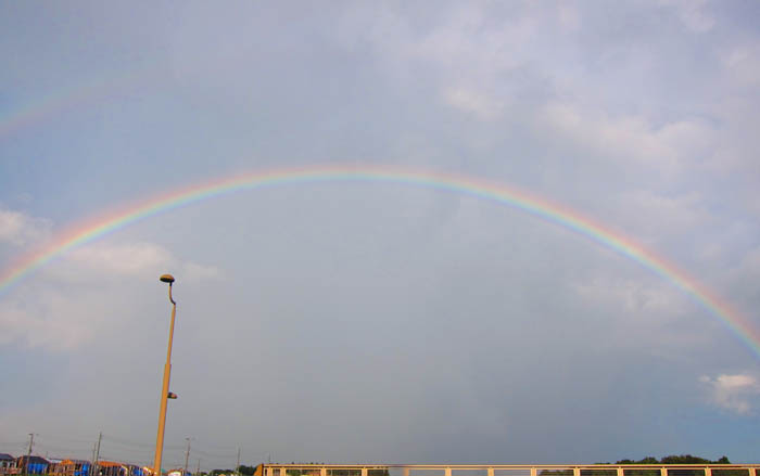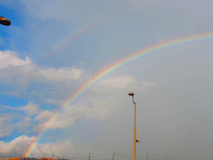 と大きな虹の橋が架かっていました。しかも、外側には2本目の虹もうっすらと。