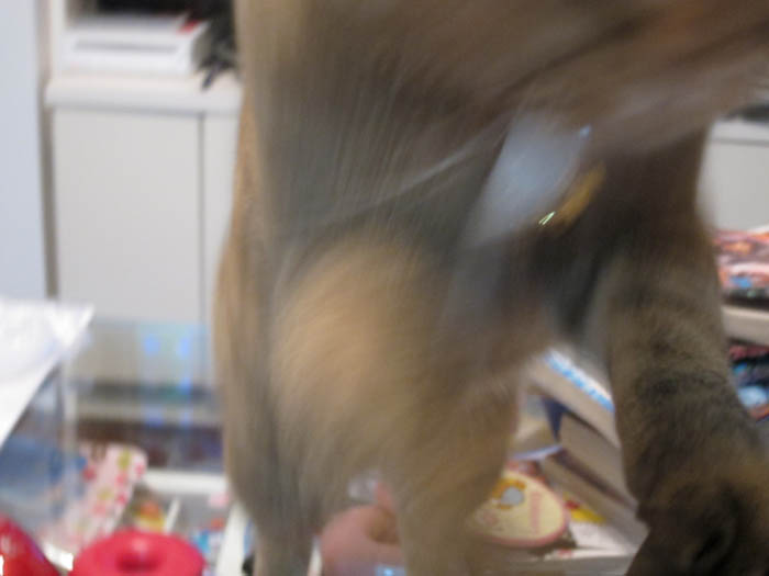 の持つポテチを目掛けて猛突進するぽっけ♂。
