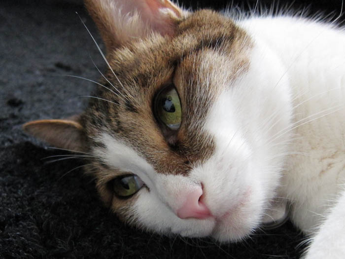 今は茶色ソファー横の絨毯の上でマッタリ中。