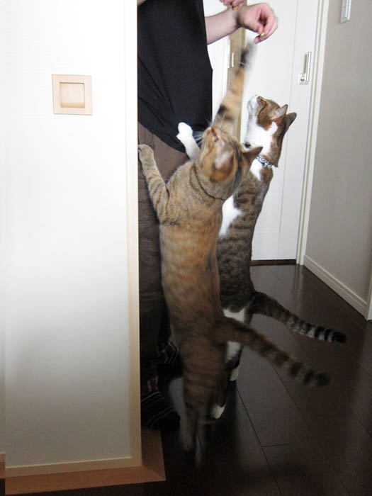2匹に必死のおねだりをされてとても嬉しかったらしく、