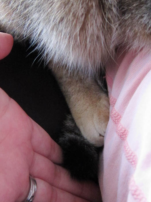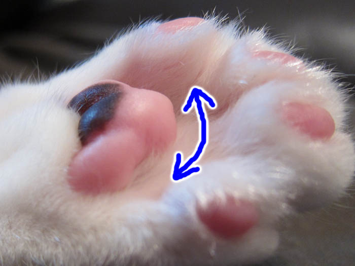 指の根元は意外と細く、指球(指先の肉球)の存在感がいっぱい