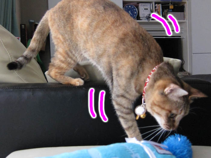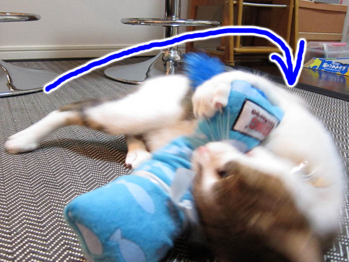 が落っこちています。更に自分で自分のしっぽも踏んでいます。