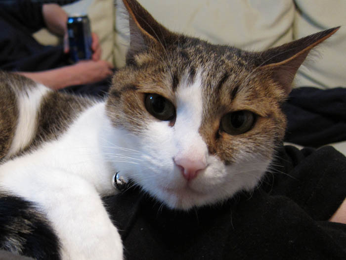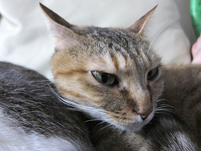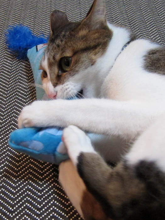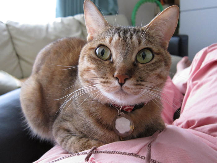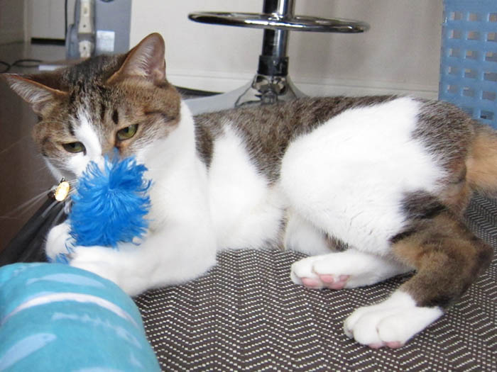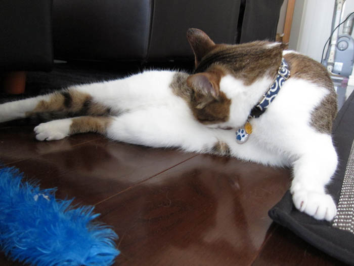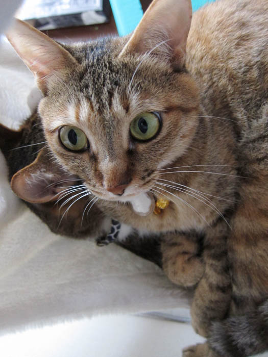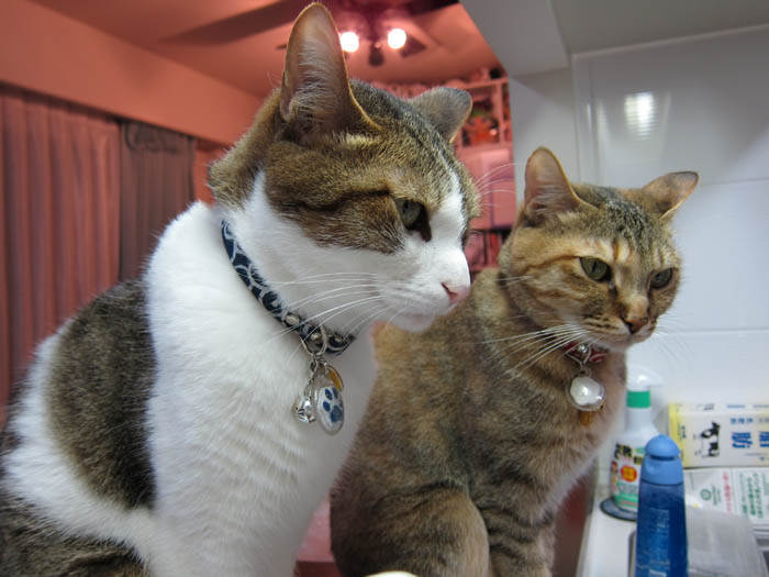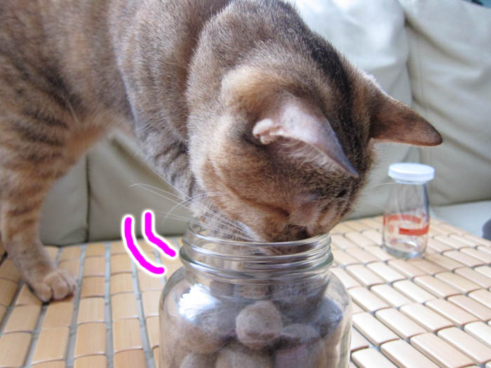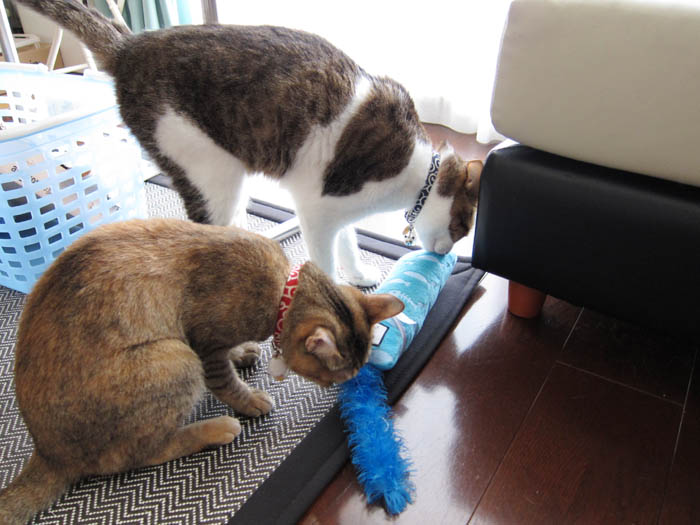 2010年 6/3(木) 656日目のぴっち♀とぽっけ♂ ~おやつとトイレ~おやつのササミにウハウハな2匹。猫トイレ掃除をして、真っ先に入ってきたのは……。