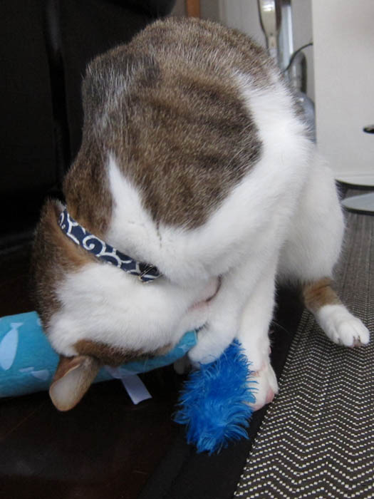 を入れて……。カプリと毛玉を銜えて取り出しました。
