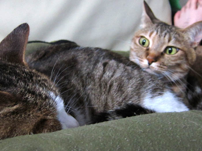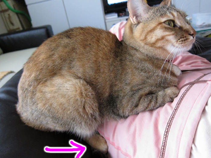 2010年 6/2(水) 655日目のぴっち♀とぽっけ♂~背もたれをめぐって~猫は寝ているように見えても、実は色々わかっています。というのを実感した日(笑)。