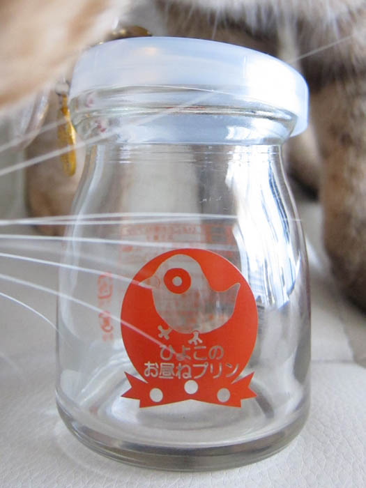 ひげを入れているプリンの瓶。