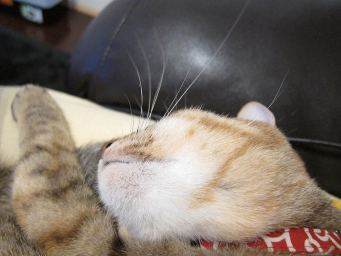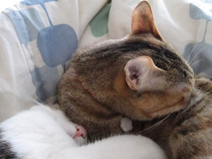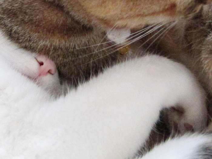 顎の下に埋もれている前足が