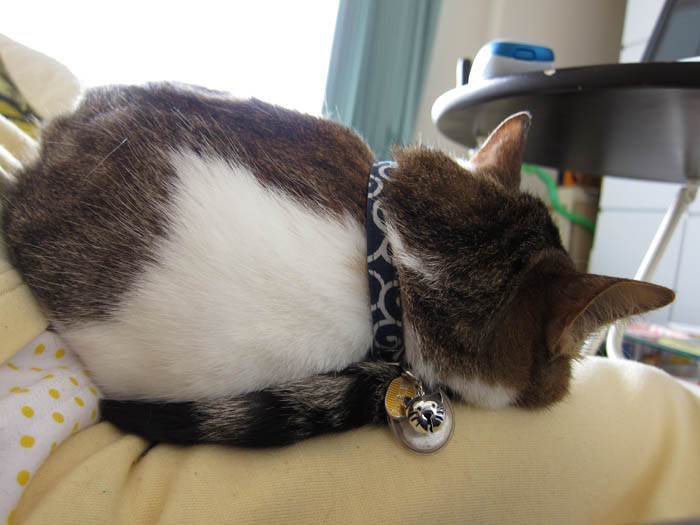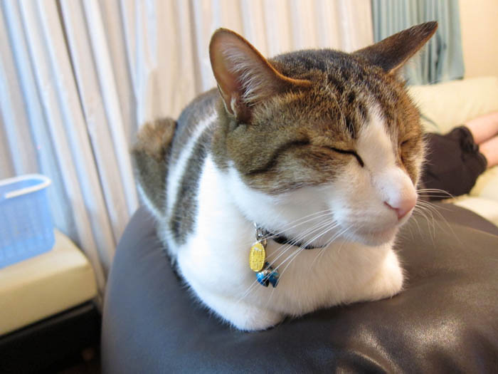 食後はソファーの背もたれの上で一休みした後、