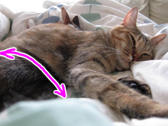 シッポの付け根に鼻先がつかんばかり。