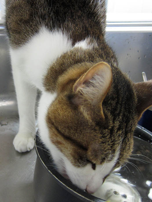 炊飯器の内釜に入っているお水を飲んでいます。