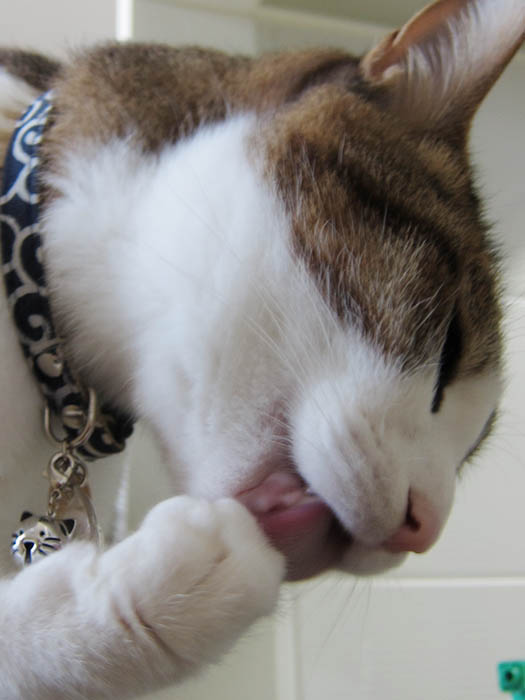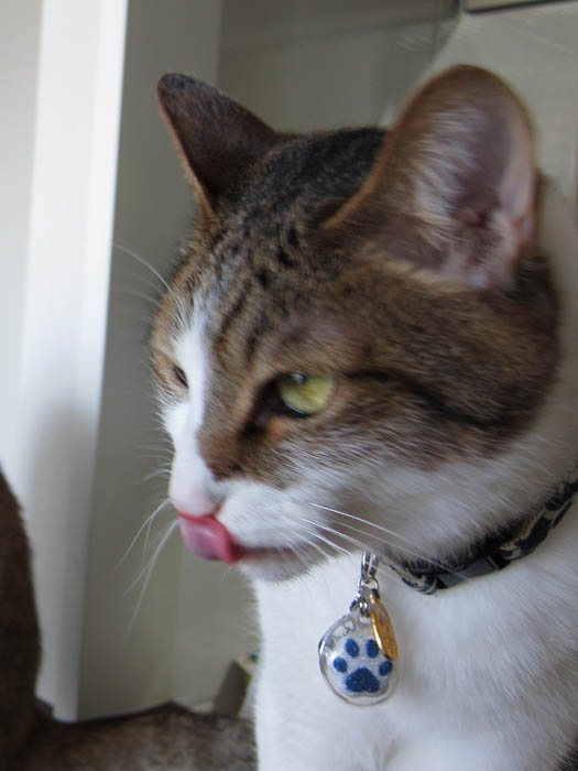 水を飲む際に濡らしてしまった鼻先をペロリ。