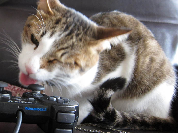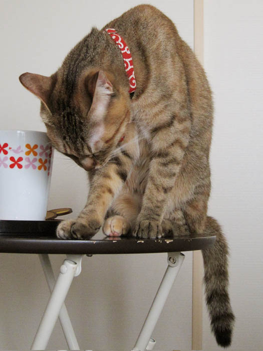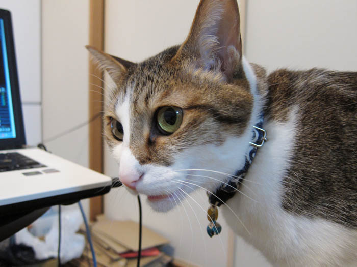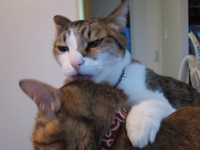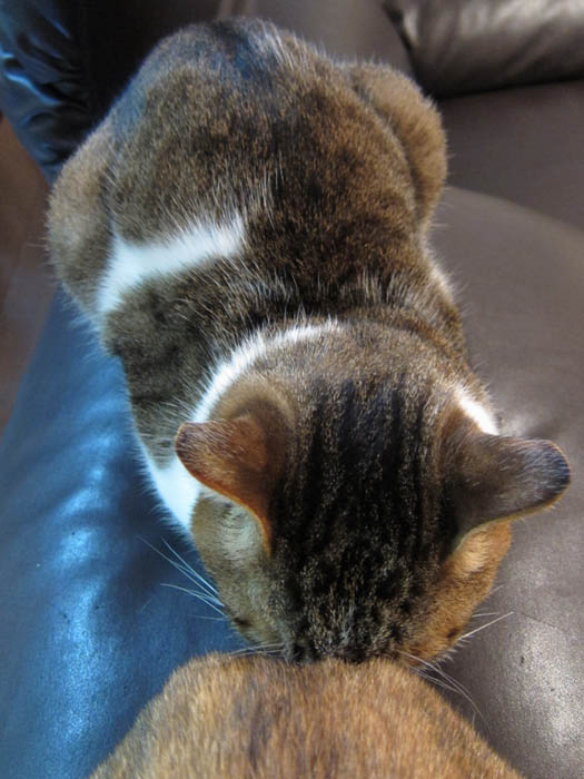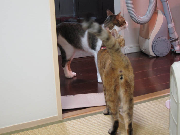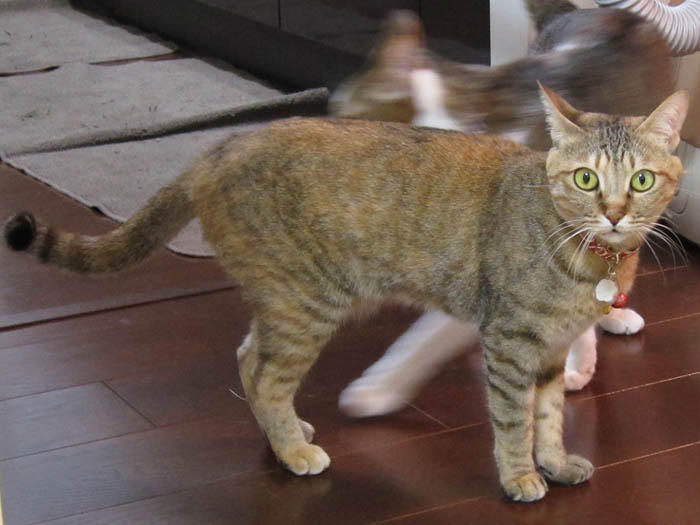 2010年 5/5(水・祝) 627日目のぴっち♀とぽっけ♂ ~出鼻をくじかれ~ぴっち♀のキックに困惑するぽっけ♂。猫について、新たな発見をしました。その発見とは……