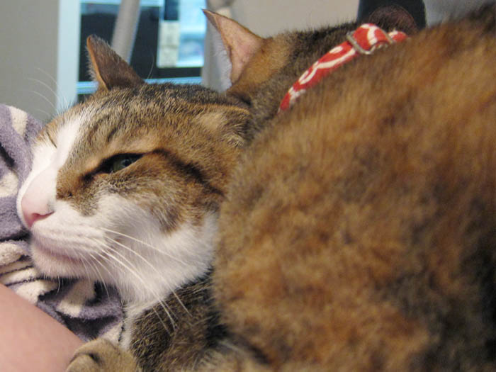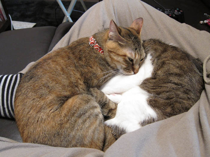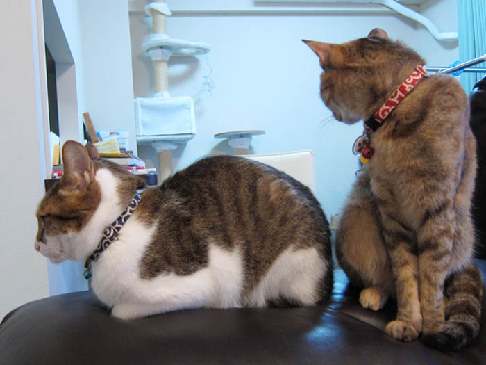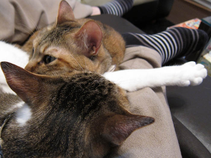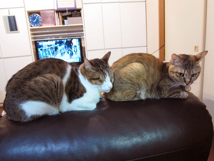 2009年 5/5(火・祝) 262日目のぴっち♀とぽっけ♂ ~察する猫2匹~新規写真追加。「ぽっけ♂ヒゲ事件」後の報告。目つきの悪い2匹。