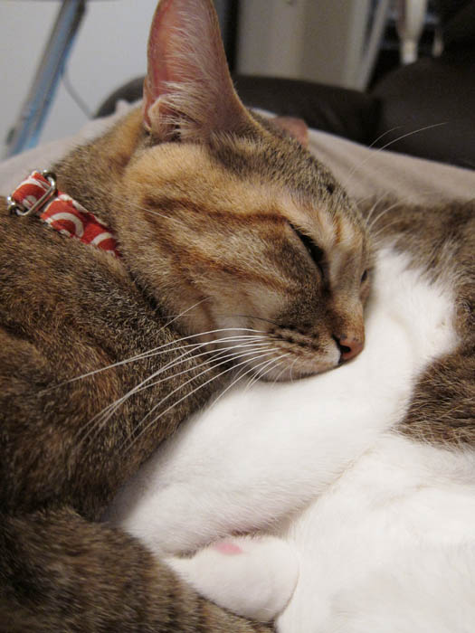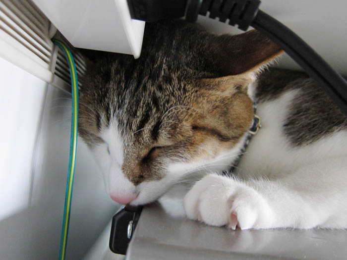2010年 5/6(木) 628日目のぴっち♀とぽっけ♂ ~怪獣ぽっけ♂~窓際でステキお昼寝中のぽっけ♂。そして、ステキすぎる怪獣な毛並み。