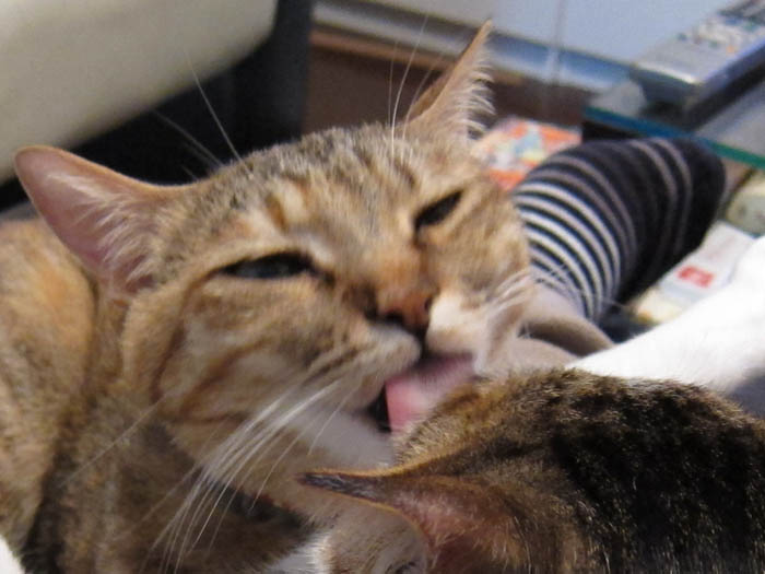 目を覚ますと、ぽっけ♂の毛づくろいを始めました。