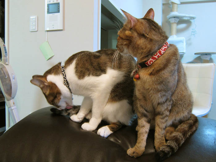 ぽっけ♂がぴっち♀を毛づくろいしています