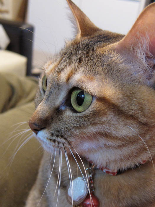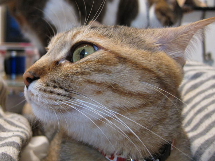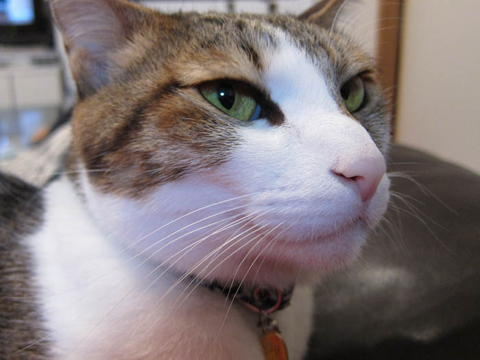 付近は白毛のため、キジ柄の外側にちらりと見える白毛もまたラブリー。