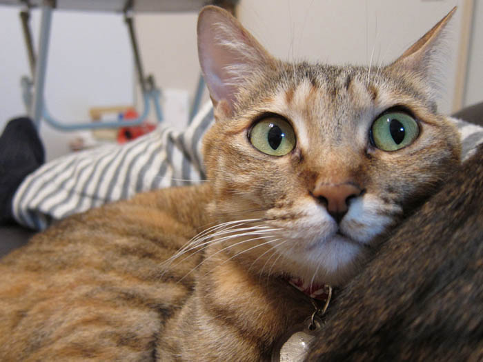 が昨日うちに着いた時は、おやつをあげた後、しきりに足元をウロウロ&スリスリして甘えまくり、沢山撫でてもらったというぴっち♀。