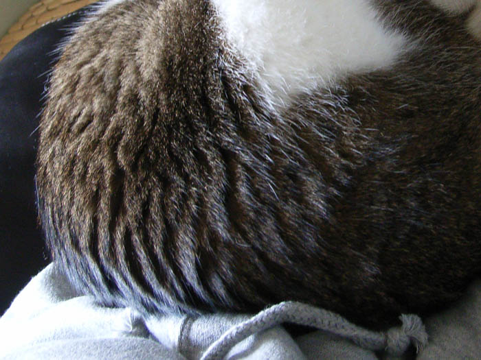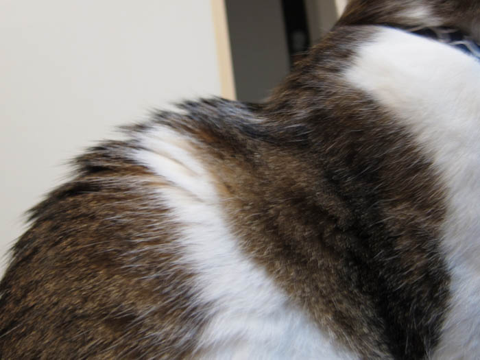 パッと見は毛の割れ目、もしくは毛並みのように見えます。