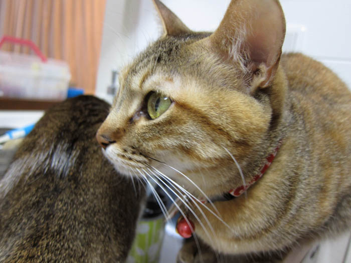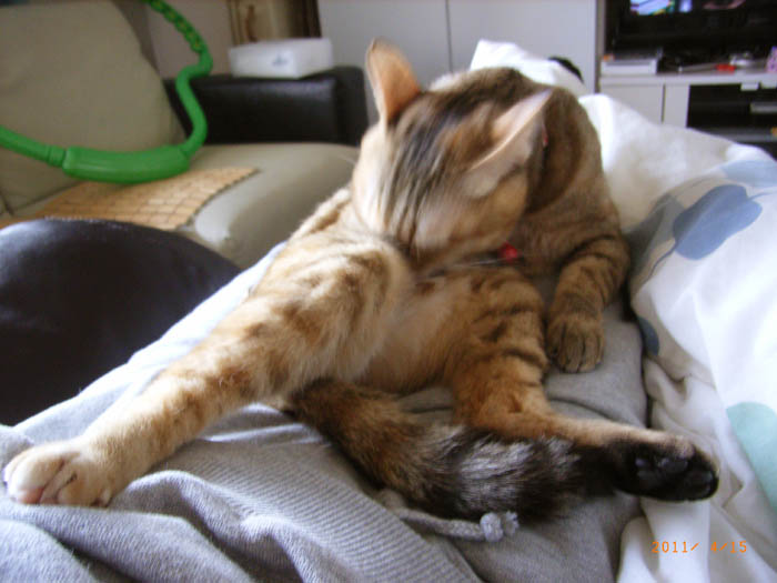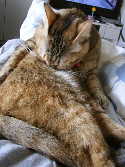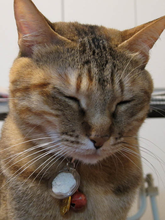 私が帰ったというのに、食後にいつも通りの毛づくろいをして、いつも通りのお昼寝タイムに。