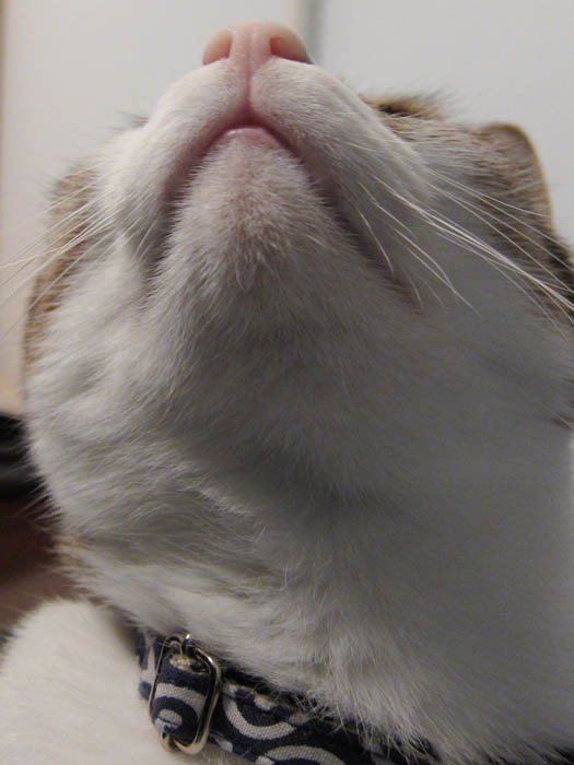 もう片手は下に下げて、ぽっけ♂の首元を水平に撮影。
