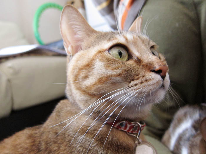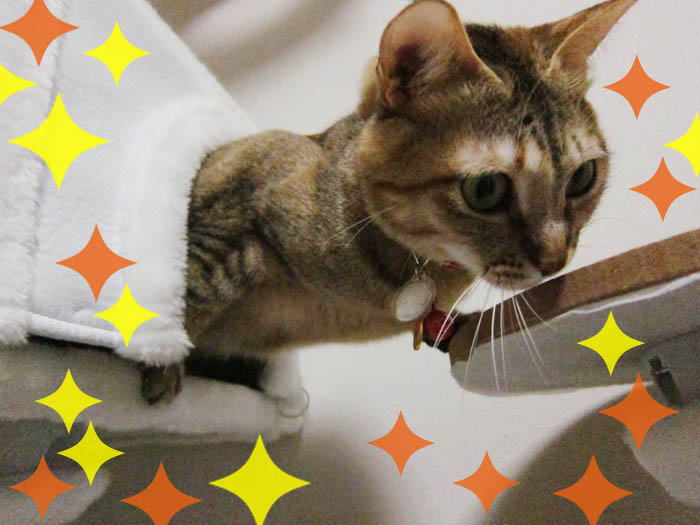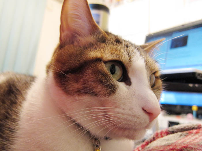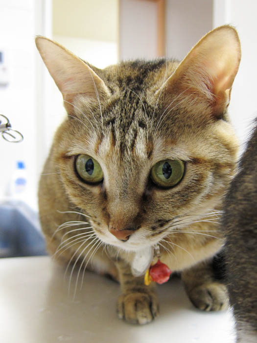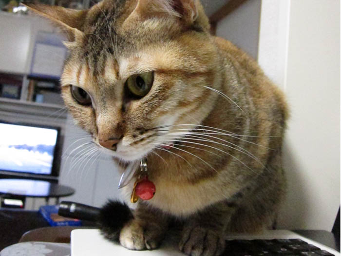 朝、キッチンにやって来てゴハンを狙うぽっけ♂。