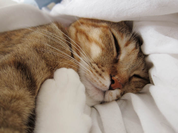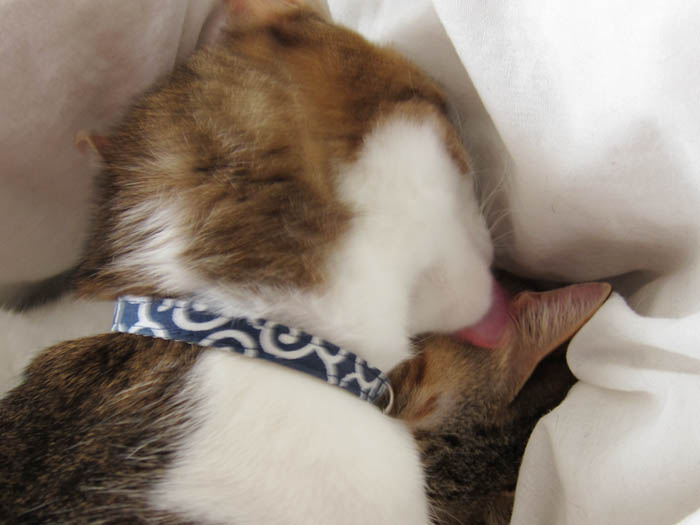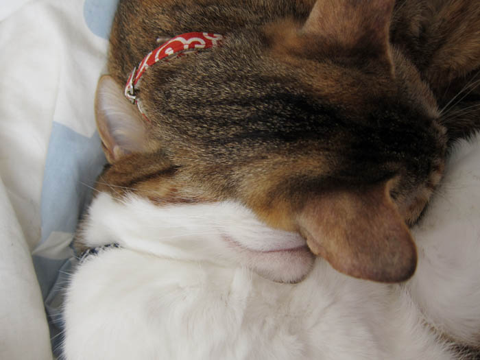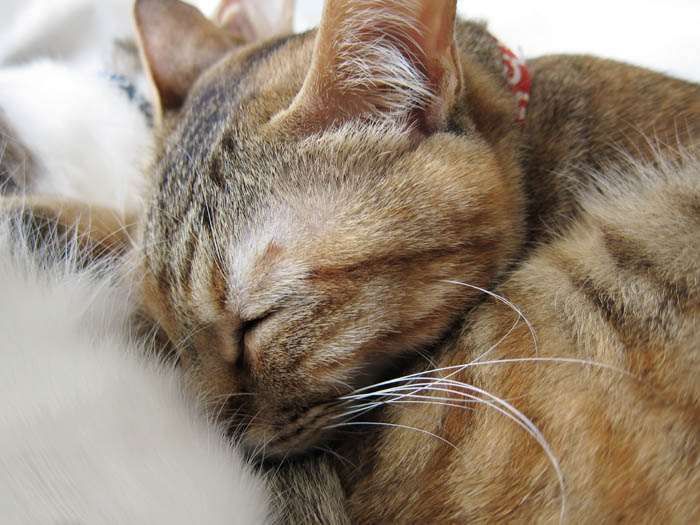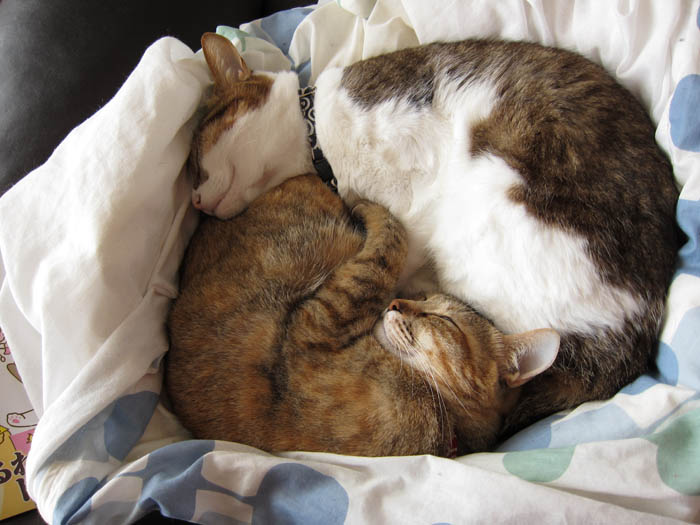 身を寄せ合い、頬も寄せ合って眠る2匹。