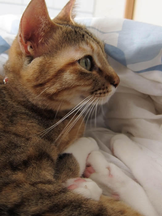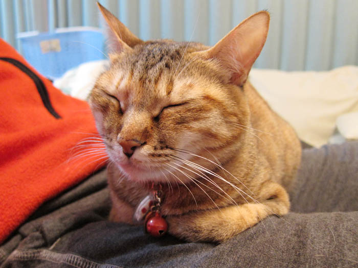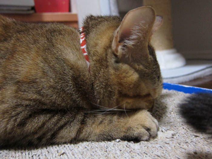 の足の上でマッタリと。ぴっち♀と同じく前足