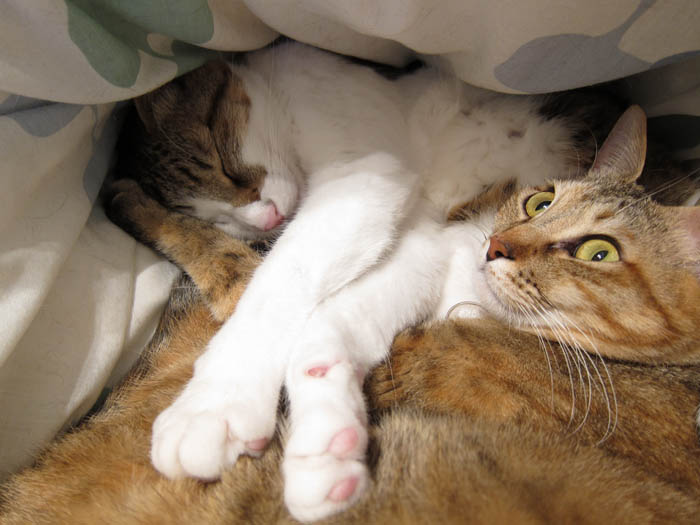 2010年 3/4(木) 565日目のぴっち♀とぽっけ♂ ~オシリあい~新規写真追加。しっぽがクロスしたり、連結したりな2匹。新調チャームのご紹介。