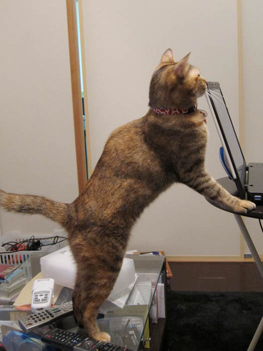 でちょいちょいと遊ぶのを見て、カウンターの上から凝視しつつ、