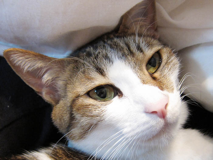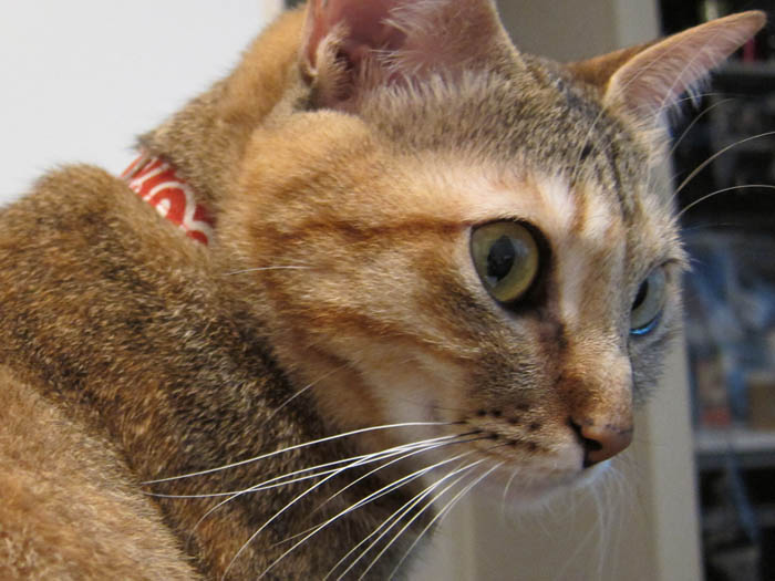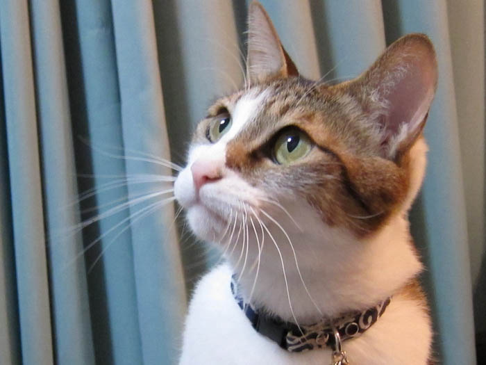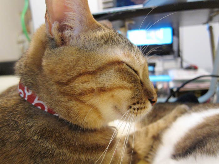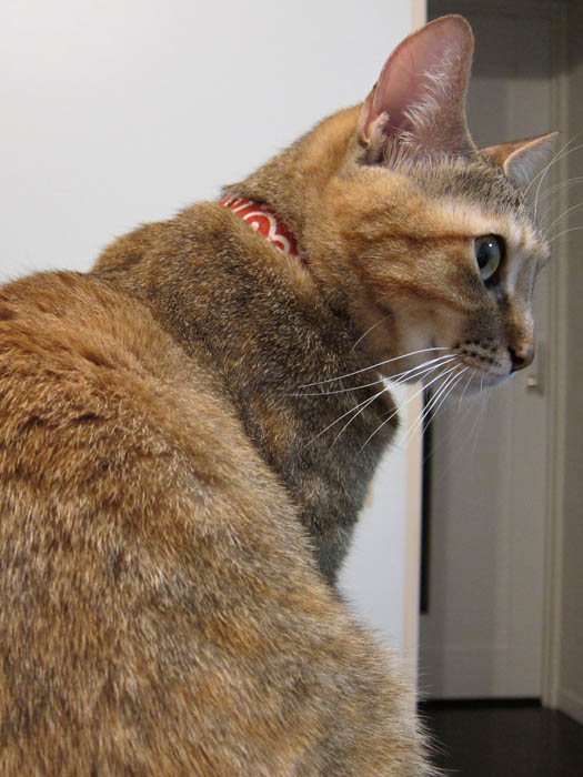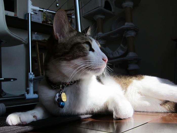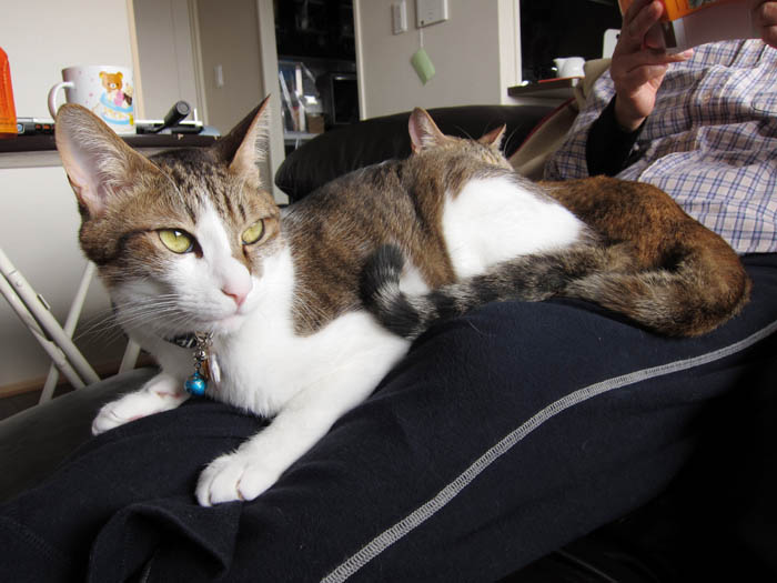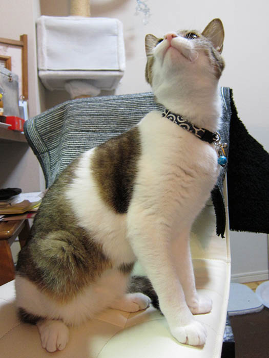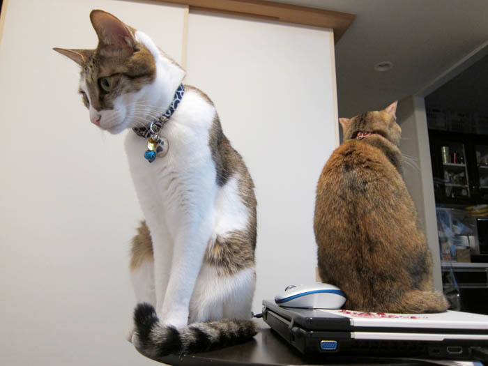の上に乗っていたりします。背中越しにこちらをチラリと振り返り……。