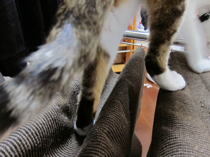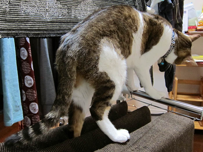。前足の爪で引っ掛けながら、
