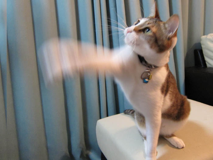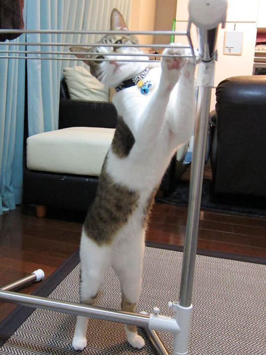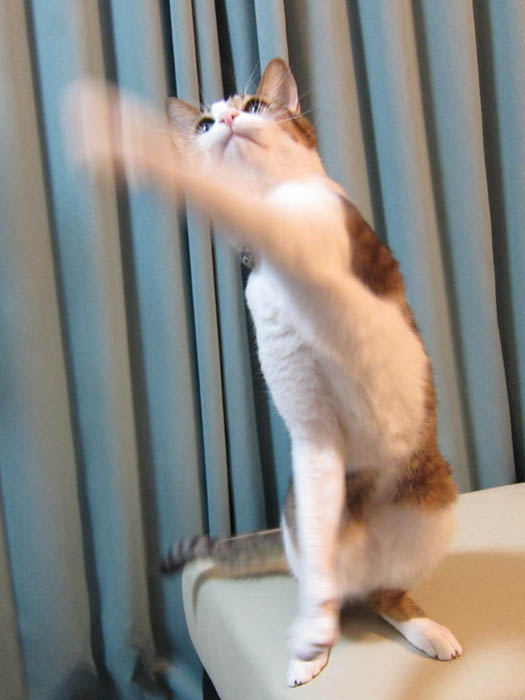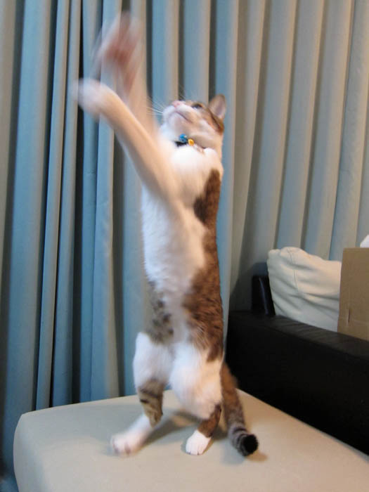 立ち上がって猫パンチ