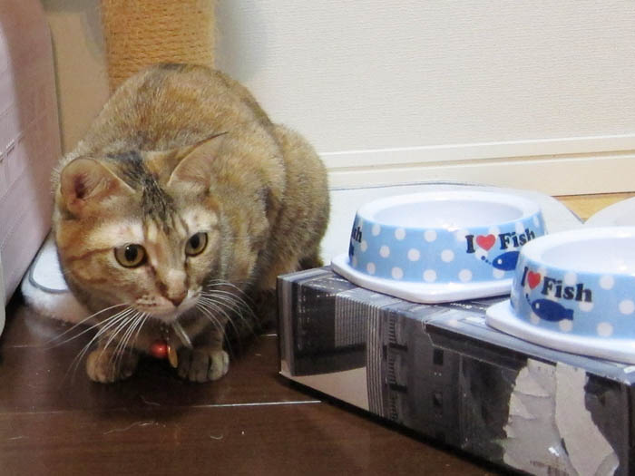 ぴっち♀は猫タワーとゴハン箱の間で