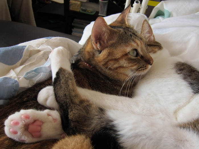 2009年 12/6(日) 477日目のぴっち♀とぽっけ♂ ~猫肉球を合わせて~新規写真追加。猫の肉球と肉球を合わせて……。有名な某お仏壇のCMを思い出しながらどうぞ。