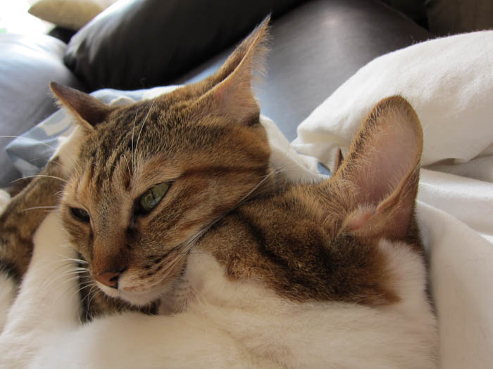 に顎を乗せていました。まさに、【猫の腕枕」】です。