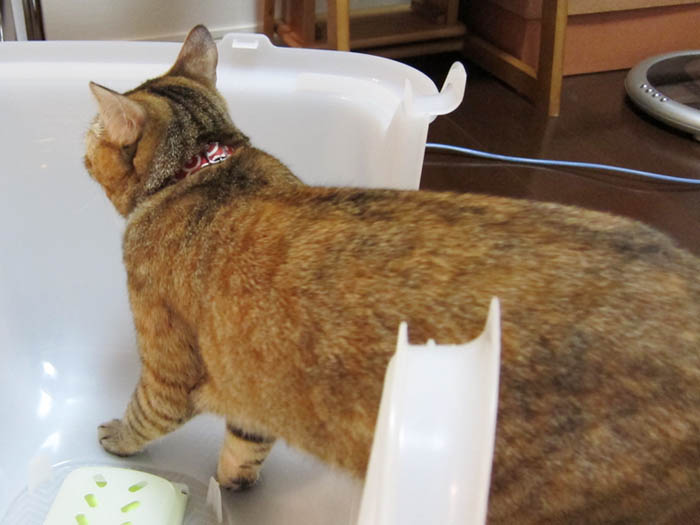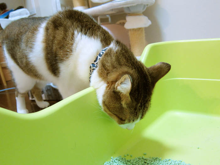 トイレ砂を沢山掘ります。