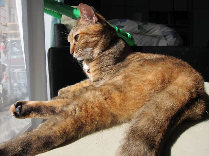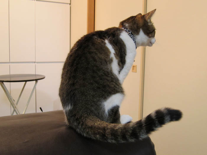 すぐ後の窓際ソファーへと移動したぽっけ♂。