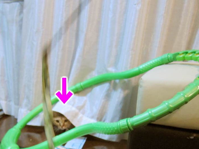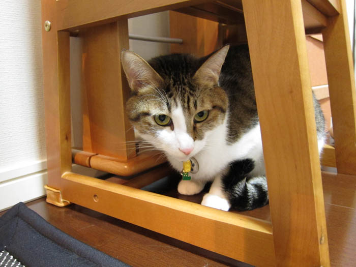 踏み台の下に潜んでいるぽっけ♂。