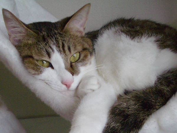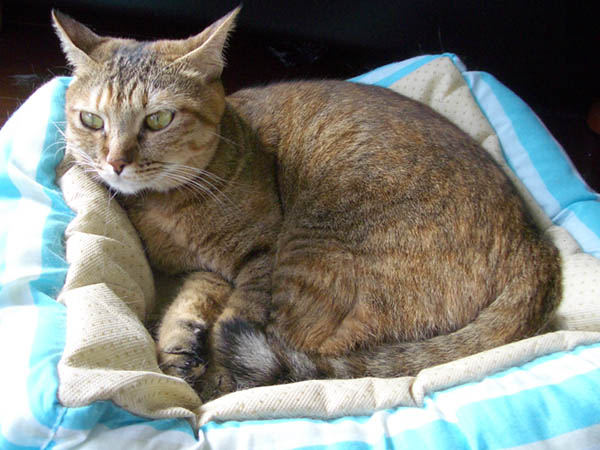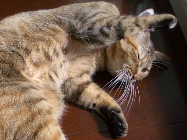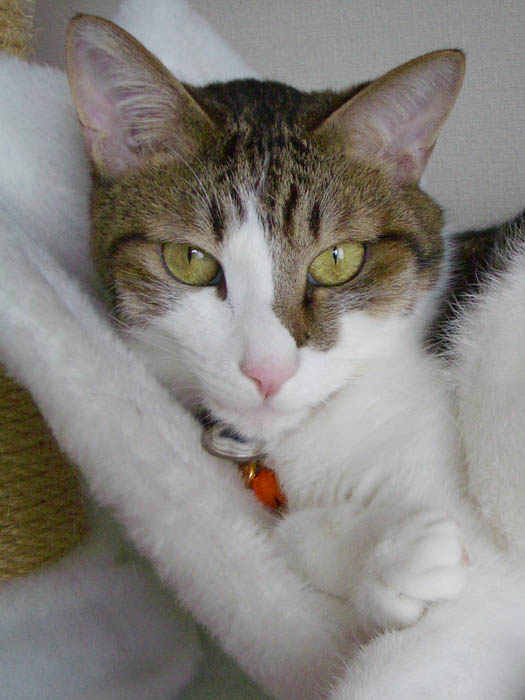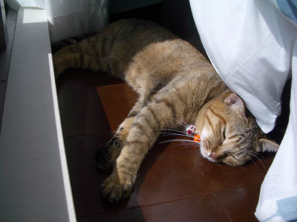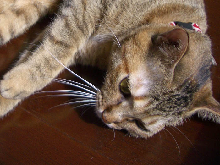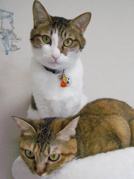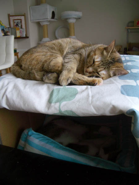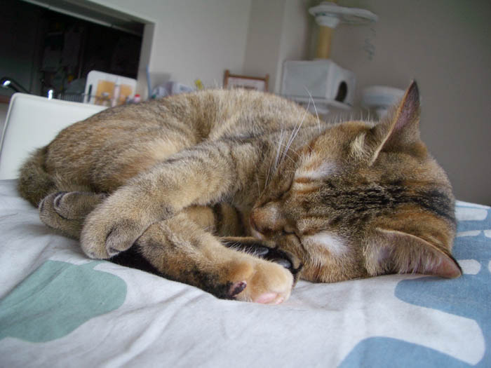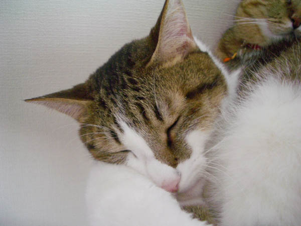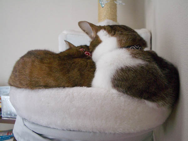 2008年 10/21(火) 66日目のぴっち♀とぽっけ♂ ~お昼寝ビフォーアフター~ 新規写真追加。ぽっけ♂アジの開きをもう1枚。2匹で背中合わせで寝た後には……。