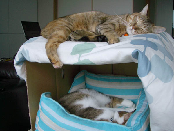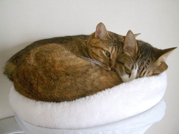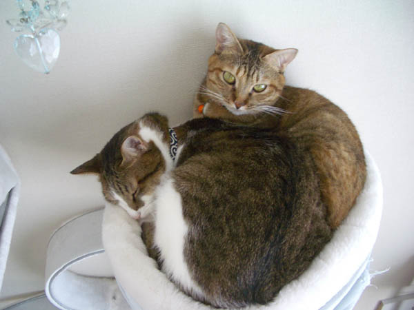 どちらもフチに顔を乗せてにゃふ~んとしています。
