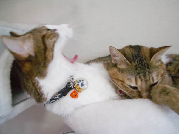 2008年 10/18(土) 63日目のぴっち♀とぽっけ♂ ~実況中継3連戦と素敵寝姿~新規写真超大量追加。3箇所での猫プロレス、篭城戦アリの実況中継。胸を張って寝ているぽっけ♂など。