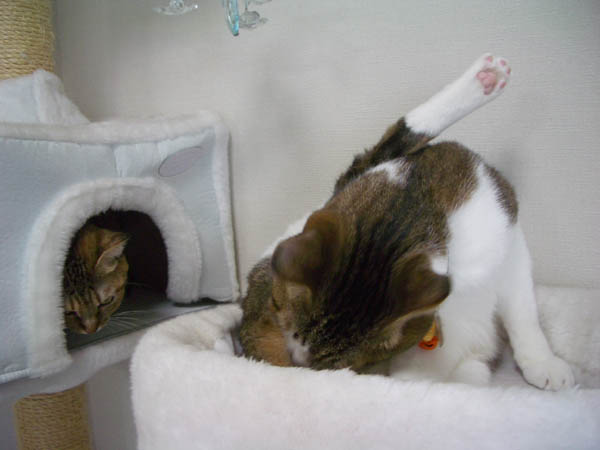 8/21(木) 5日目のぴっち♀とぽっけ♂ ~猫タワーと駆虫薬~