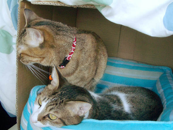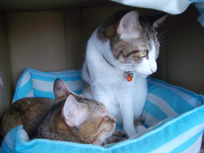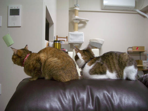 お構いナシに乗ったりウロウロしたりする2匹。