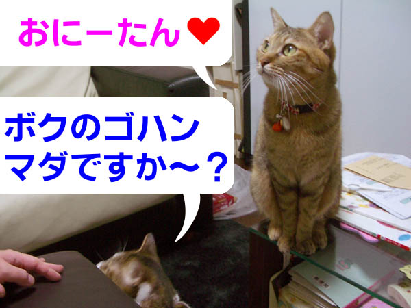あたちにゴハン、チョウダイなのニャ~。」