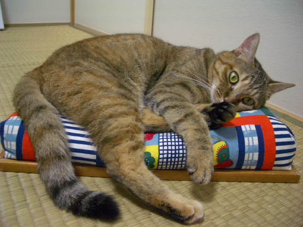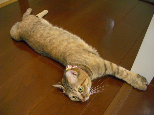 床に横たわって、のんびり休憩中。
