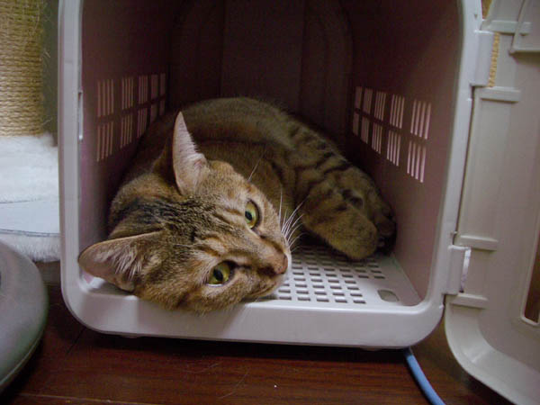 逃げ込んだ先は……キャリーの中。