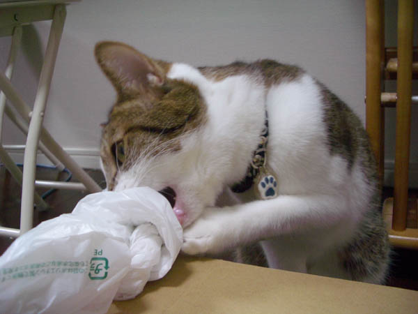 ビニールをカプカプ。