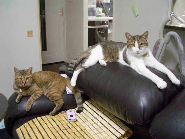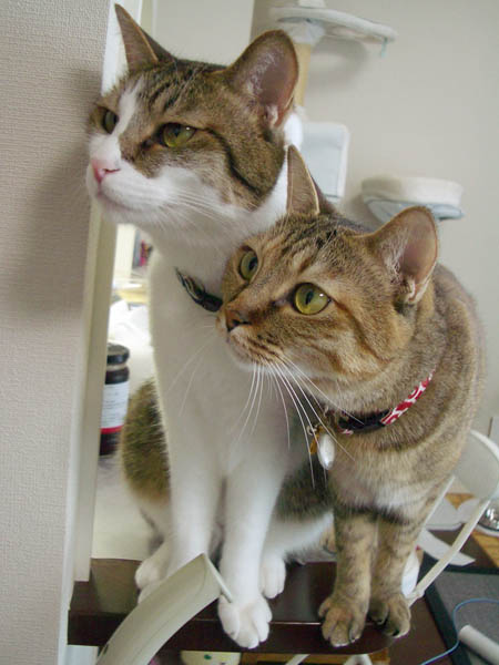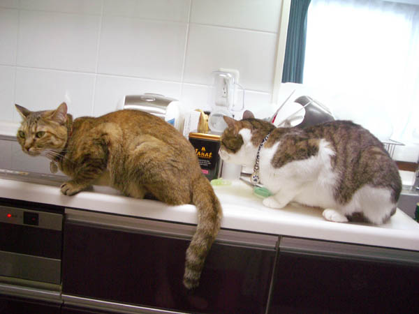 通り道のカウンターで待ち構える2匹。