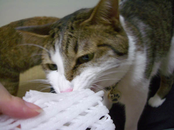 鼻をフンフンとしながらネットを嗅いでいます。